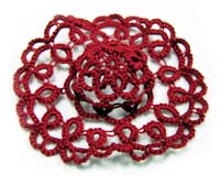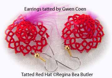 The Tatted Red Hat is a perfect size for a pinned brooch when worked in size 20 thread. Tat the pattern in size 80 thread to make a pair of earrings.
